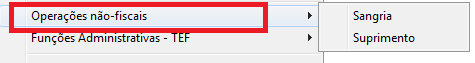 Supervisão (F10) - Operações não-fiscais – Opção utilizada para alimentar o caixa (Suprimento) ou efetuar uma retirada (Sangria).