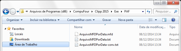 O arquivo será salvo na pasta PAF de onde o sistema está instalado no formato TXT, para localizar o arquivo gerado, clique com o botão contrário do mouse sobre o ícone do Clipp / Propriedades / Localizar destino ou Abrir local do arquivo, localize a pasta PAF, e abra a mesma, dentro desta pasta, localize o arquivo EspelhoPorData que foi gerado.