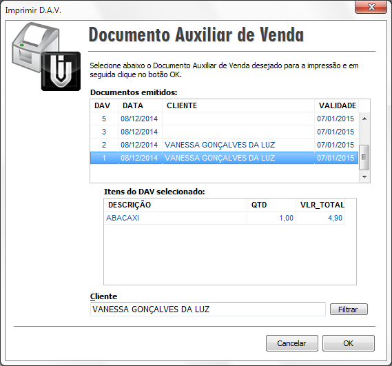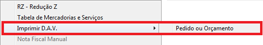 Nesta opção é possível imprimir os Documentos Auxiliares de Venda através da Impressora Fiscal.