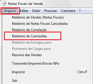 Para gerar um relatório de comissões, execute os seguintes procedimentos:
