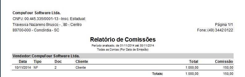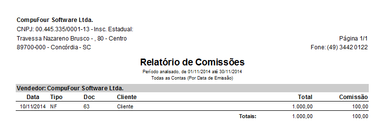 Segue abaixo uma imagem do relatório de comissão gerado: