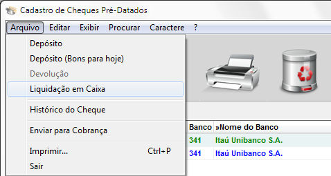 2. No módulo Cheques Pré-Datados, entre no menu “Arquivo” e escolha a opção