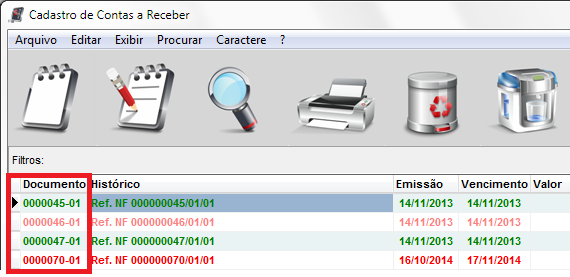 O Documento deverá ser correspondente ao número do documento de uma Conta recebida conforme exemplo abaixo: