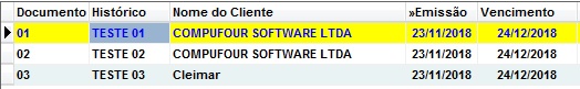 Após marcar, a conta selecionada ficará na cor amarela, caso tenha mais contas para cancelar o boleto na remessa/arquivo de cobrança para transmissão, basta efetuar o mesmo processo.
