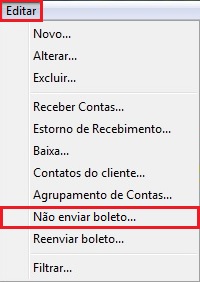 Após marcar a(s) conta(s) que necessita, clique no menu Editar e após em Não enviar boleto...