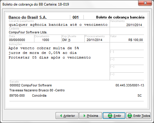Na sequencia será apresentada a tela de geração do Boleto, clique em Emitir: