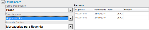Obs: Caso a opção de Parcelamento desejada não esteja cadastrada clique aqui para saber como cadastrar.