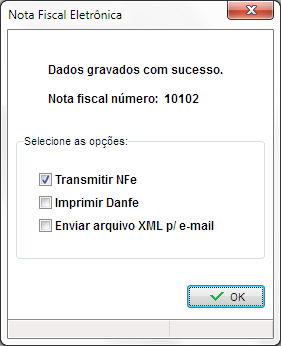 Realizado esses procedimentos poderá finalizar a nota, em seguida marcar se deseja Transmitir / Imprimir DANFe / Enviar arquivo XML por e-mail.