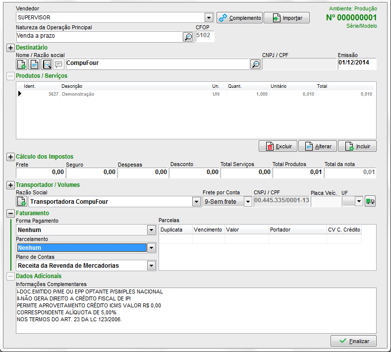 Estando o sistema configurado vamos a criação de uma Nota Fiscal Eletrônica de Venda.