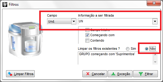 Obs: Mantenha a opção “Limpar os Filtros existentes” = Não para que o sistema mantenha o filtro anterior.