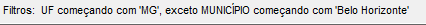 Após clicar em Exceção serão listados todos os clientes de MG exceto Belo Horizonte.