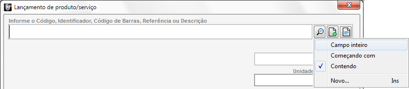 Por exemplo, acessamos o Procurar - F3 no módulo de Compras, selecionamos então o tipo de pesquisa que desejamos manter (Campo inteiro, Começando com, Contendo).