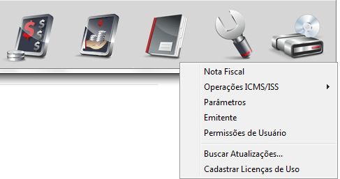 Ao acessar o Módulo de Configurações encontrará as opções: Nota Fiscal, Operações ICMS/ISS, Parâmetros, Emitente, Permissões de Usuários, Buscar Atualizações e Cadastrar Licenças de Uso. Abaixo explicaremos a função de cada uma delas.