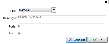 Ativo: Define se a impressora está ativa ou não para uso no sistema.