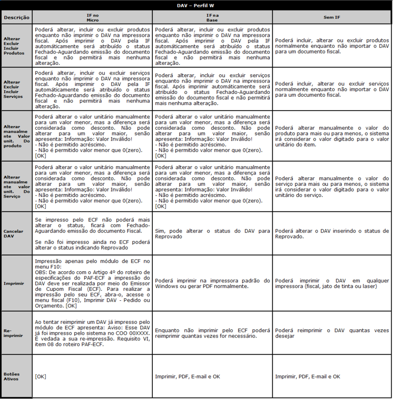 2 - (REQUISITO XXVIII – item 3.A) Perfil W não poderá ocorrer a impressão da NFC-e quando o computador possuir ECF. Poderá ocorrer apenas a Emissão da NFC-e e Impressão do Comprovante do Prazo e Cartão.