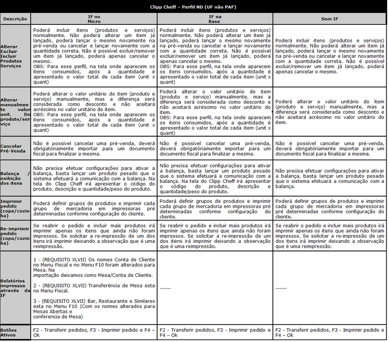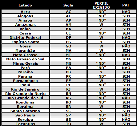 TABELA DE PERFIS DE REQUISTOS DO PAF-ECF POR UNIDADE FEDERADA _