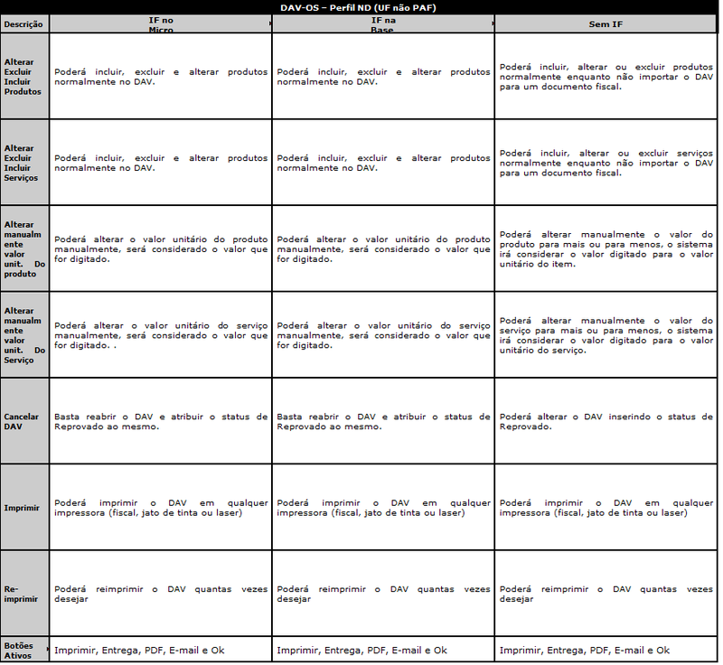 OBS: Se tem IF, está na BD ou no micro? Isso irá influênciar na impressão dos DAVs.