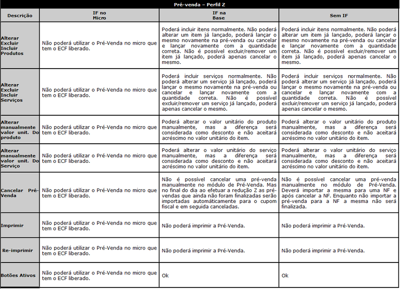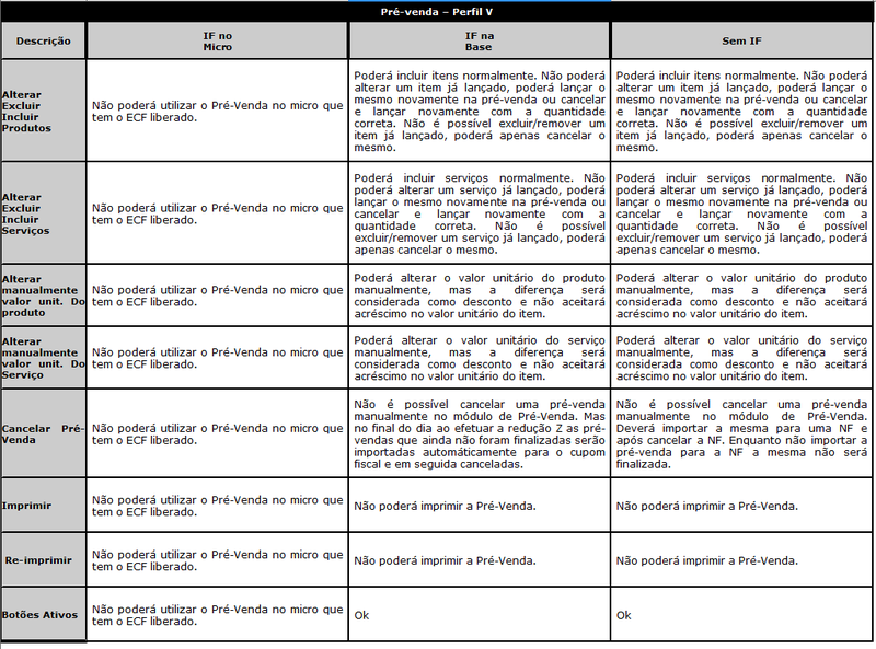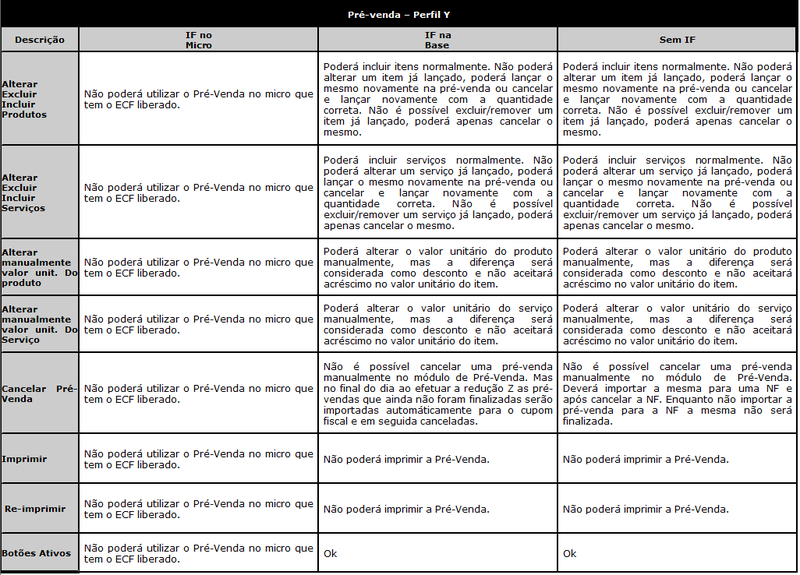1 - Perfil V e Y não pode ser utilizada a NFC-e quando o computador possuir ECF (PIN32.MSC). (Estados que ainda não possuem NFCe, e quando utilizarem a NFCe e tiverem ECF teremos que fazer novos comandos de impressões no ECF)