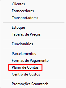 É necessário acessar o menu Cadastro / Plano de Contas.
