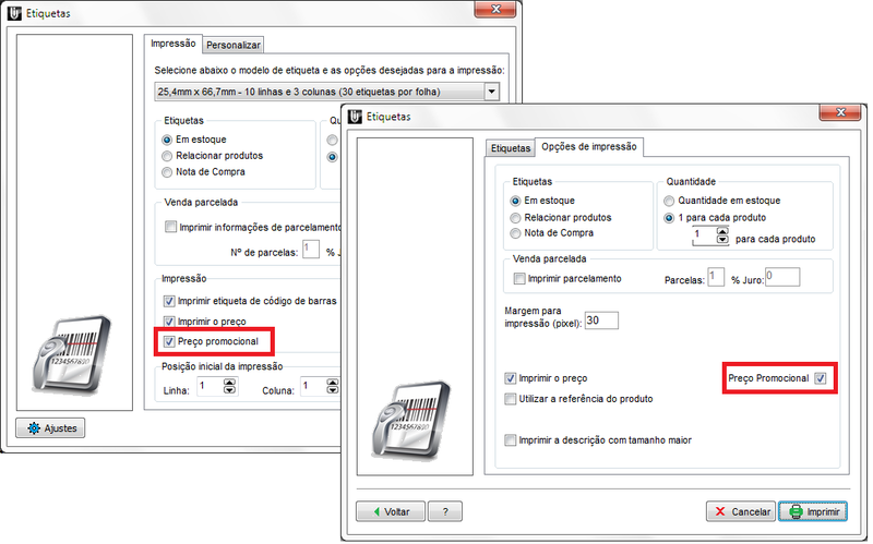 Após realizar o filtro, conseguirá imprimir as Etiquetas com o preço promocional.