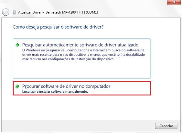 Será aberta a janela abaixo, então é necessário clicar sobre a opção: “Procurar software de driver no computador”: