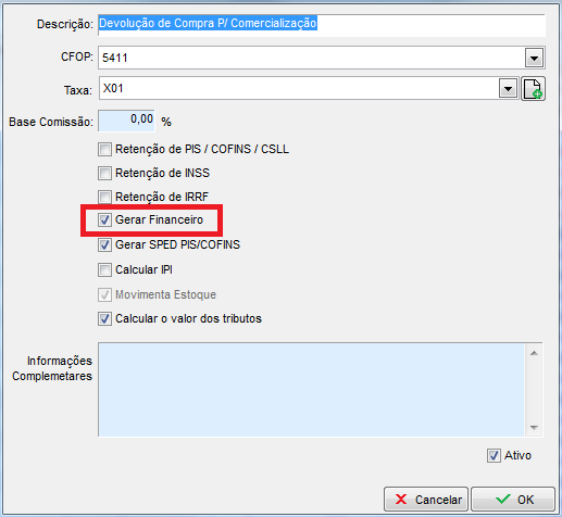 Para ajustar, clique em Configurações - Operações ICMS/ISS - Naturezas, clique duas vezes na natureza de operação de devolução utilizada na nota.