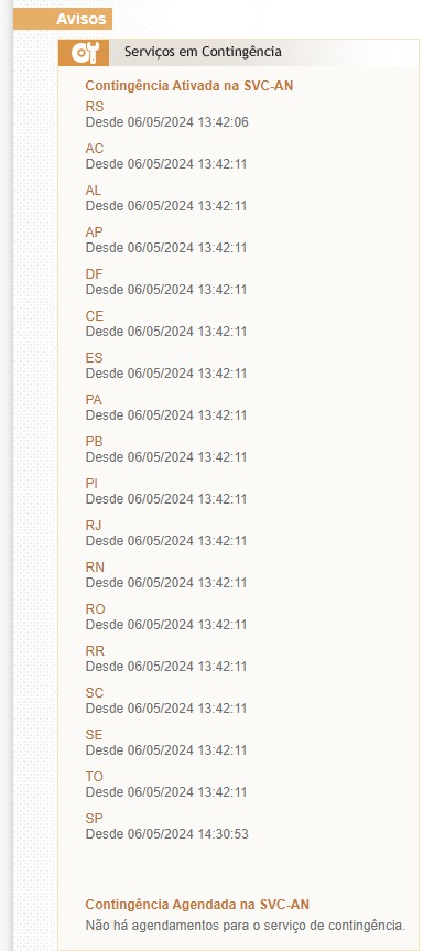 Como medida preventiva, a SVC-AN (Serviço de Autorização de Notas Fiscais Eletrônicas em Ambiente Nacional) foi ativada para autorização de NF-e não apenas para as unidades federativas (UF) participantes da SVRS (Sefaz Virtual do Rio Grande do Sul), mas também para o próprio RS.
