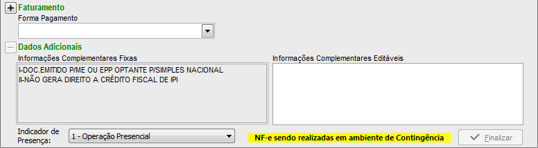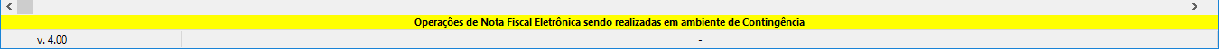 Será exibida uma tarja amarela, tanto no Gerenciador de NFe, quanto no Clipp Store, informando que o ambiente de Contingência está ativado.