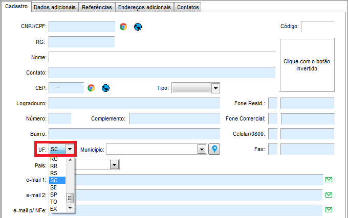 - Acesse o cadastro de clientes, abra-o e verifique a UF do destinatário: