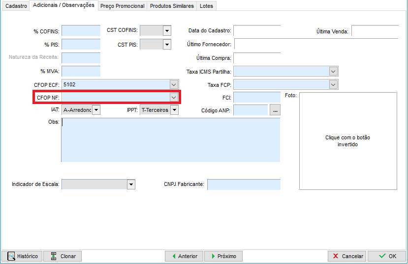 - No cadastro do produto verifique o campo “CFOP NF”.