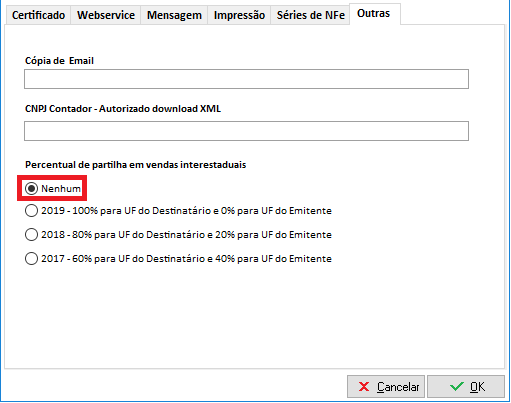 No Gerenciador de NFe, menu Opções > Configurar > Outros, marque a opção “Nenhum”, conforme imagem abaixo.