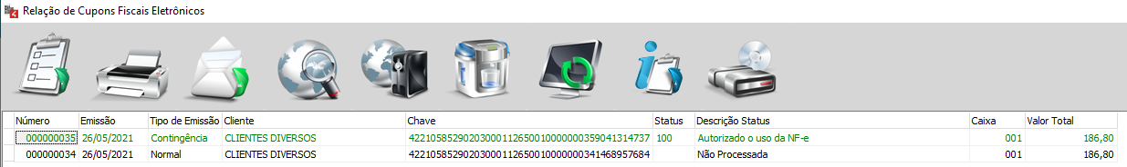 IMPORTANTE! Em caso de uso da autocontingência, será emitido um cupom em contingência e outro com Emissão Normal, ao final do processo, o cupom em emissão normal deverá ser inutilizado;