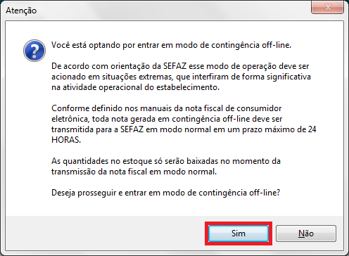 ATENÇÃO! As NFC-e emitidas em modo de contingência NÃO movimentam estoque!