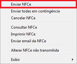 Feito isso, basta clicar com o botão direito do mouse sobre a NFC-e que deseja autorizar e clicar na opção Enviar NFCe. O XML da mesma será validado e posteriormente será retornado o status de autorizada.