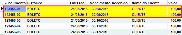 Feito isso, a conta que foi marcada ficará na cor amarela. Realize o mesmo processo para as demais contas que deseja gerar um boleto.