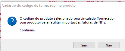 Será apresentada uma janela confirmando a parametrização, clique em Sim e seu produto será parametrizado conforme informações contidas no XML.