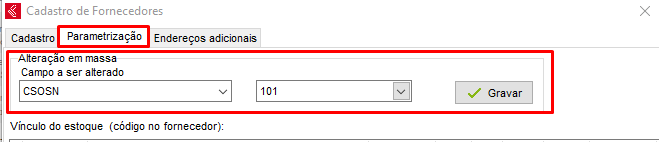 Abra o cadastro do Fornecedor clicando duas vezes sobre o mesmo ou através do menu Editar - Alterar, em seguida acesse a guia “Parametrização”.