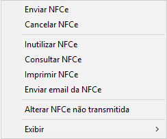 Ao clicar com o botão direito do mouse sobre um CFe serão apresentadas as opções: