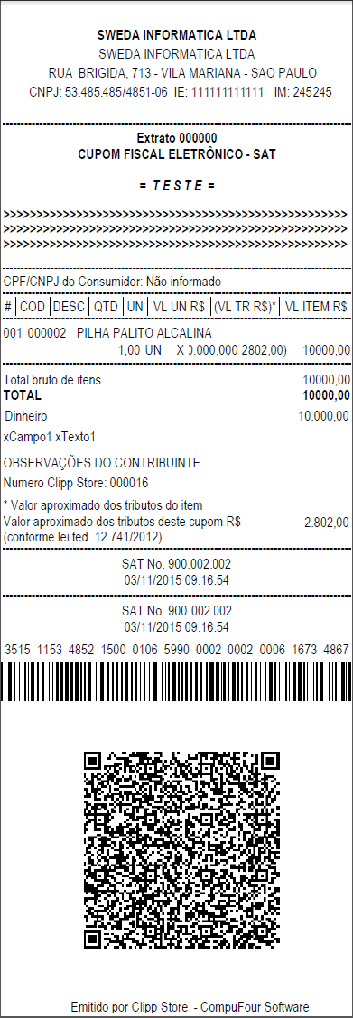 Utilizado para imprimir ou reimprimir um CFe já autorizado. Clique e veja um modelo de CFe-SAT impresso.
