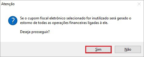 Somente será possível inutilizar um CFe ainda não autorizado. Ao selecionar esta opção será apresentada uma mensagem. Clique em "Sim" para que o CFe seja inutilizado: