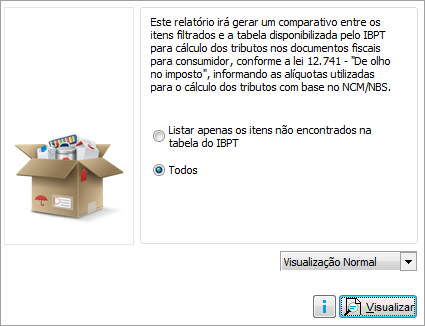 Este relatório apresentará um comparativo entre os itens filtrados em seu módulo de estoque e a tabela disponibilizada pelo IBPT para cálculo dos tributos nos documentos fiscais para consumidor, informando as alíquotas utilizadas para o cálculo dos tributos com base no NCM / NBS dos produtos.