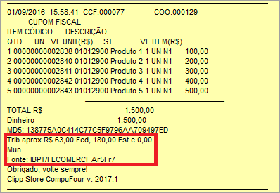 Confirmando o compromisso da CompuFour Software em disponibilizar atualizações que atendam a legislação atual, o Clipp atende a Lei 12741/12 – Lei da Transparência, popular lei “de olho no imposto”.