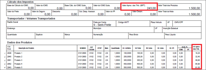 Este valor é destacado automaticamente pelo sistema com base na Tabela do IBPT (Instituto Brasileiro de Planejamento e Tributação), esta tabela define a tributação por NCM, sendo assim, para que esses valores sejam destacados em seus documentos fiscais é obrigatório que preencha o campo NCM (Nomenclatura Comum MERCOSUL) e caso necessário a Exc. Fiscal (Exceção Fiscal ) na ficha de cada produto do estoque.