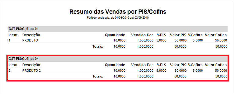 OBS: Esse relatório será gerado levando em consideração todas as vendas realizadas no período, dessa forma, o resumo das vendas por PIS/COFINS apresentará todos os produtos do seu estoque vendidos no período selecionado.