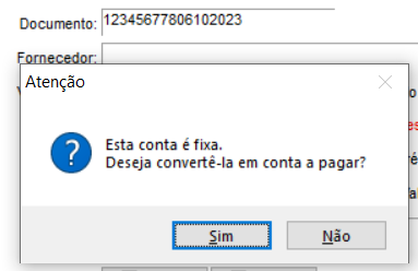 O sistema irá criar contas a pagar contendo o prefixo do documento criado juntamente com as datas, atente-se ao ano ao final do número do documento;