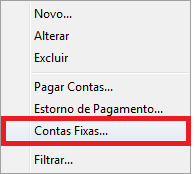 Para realizar o cadastro das Contas Fixas, dentro do seu Clipp Store, acesse o módulo de Contas a Pagar, vá até o menu Editar e clique na opção Contas Fixas.