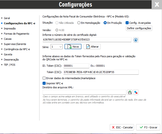 Obs: Existindo dúvidas sobre qual ambiente utilizar, série, próxima NFC-e, ID Token, Token e sobre como obter um Certificado Digital a empresa deverá entrar em contato com seu contador para obter tais informações.