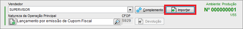 Em alguns casos é necessário que o Cupom Fiscal, NFC-e ou CFe/SAT emitido seja importado para uma NF-e. Para importar um desses documentos para a Nota Fiscal Eletrônica, é necessário que o mesmo seja emitido antes de realizar o lançamento da nota.