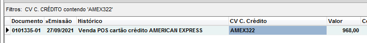 O número da transação poderá ser informado para controle interno, ao preencher, ele irá para o contas a receber na coluna C V.C crédito e poderão ser informadas Letras: