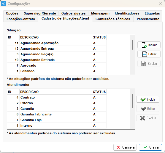Após ter concluído todas as configurações citadas acima, clique em Gravar e poderá realizar o Cadastro de Objetos para posteriormente dar início ao Lançamento das suas Ordens de Serviço